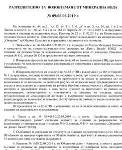 С писмо с ВХ.N;68 – 4485 от 22.05 . 2019 г.,Басейнова дирекция ,,Източнобеломорски район ,, е съгласувала искането за издаване на разрешително и е издала положително становище .