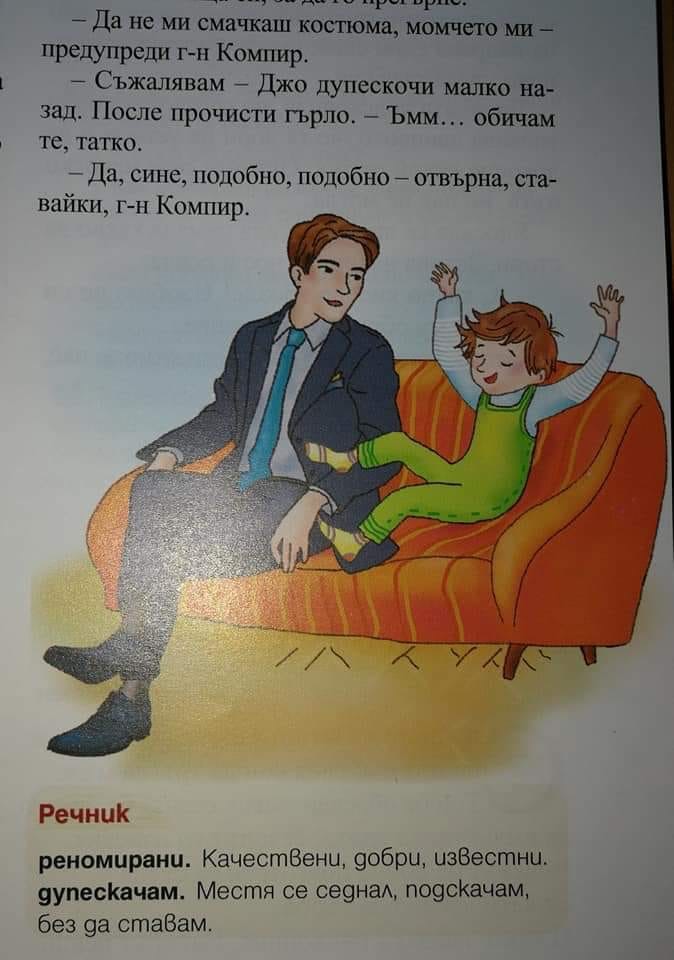 Родители изразиха своето възмущение , че в учебниците на децата им , са забелязали нов термин – ДУПЕСКАЧАМ . В речника под урока е обяснено значението на термина – местя се седнал , подскачам без да ставам . Новия израз предизвика вълна от коментари в социалните мрежи . ,, Какво е нещото, което имат за задача да научат децата ни ? И наистина ли написаното в техните учебници е издържано, аргументирано и съобразено с възрастта им? “ – питат родители .