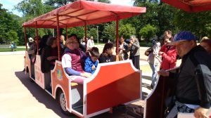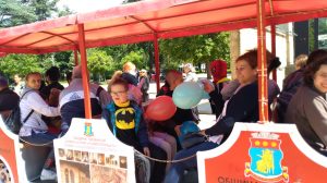Празничният  ден започна с панорамна обиколка за всички по деца и младежи  от ДЦДУ с атракционното влакче на община Казанлък, умело управлявано от машиниста Гошо Влакчето.