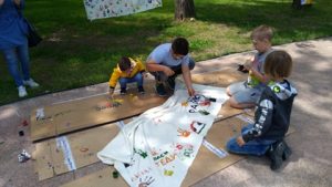 В ролята на художници в паното се включиха всички желаещи деца, участващи в празника, който Община Казанлък организира в парк Розариум“.