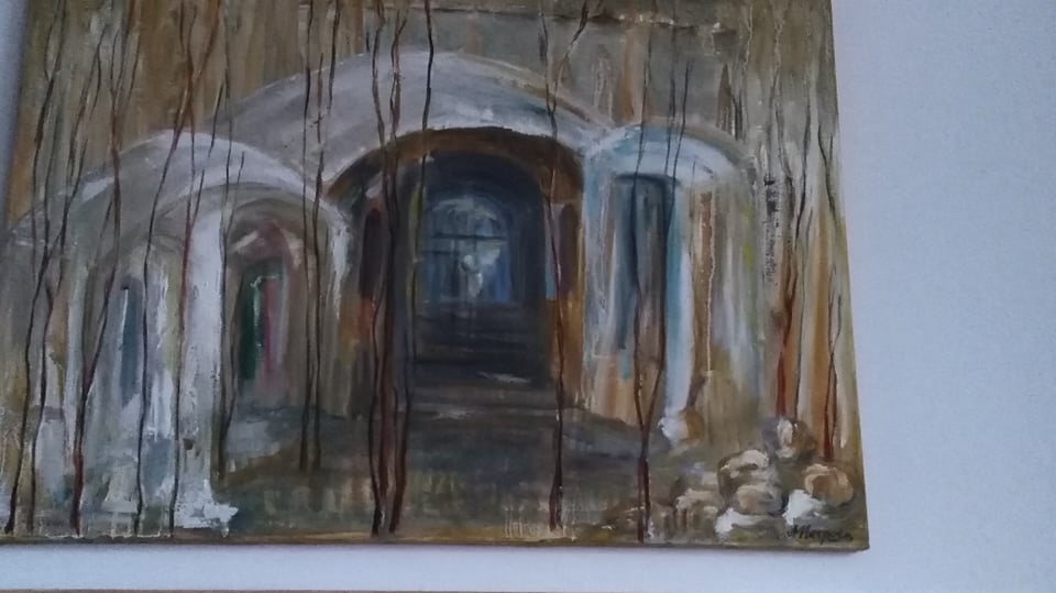 Христовото Разпятие и бял небесен ангел се появиха в картина, рисувана от казанлъшката художничка Лили Петрова, дългогодишен уредник на Клуба на дейците на културата в града и известен аранжор-декоратор.