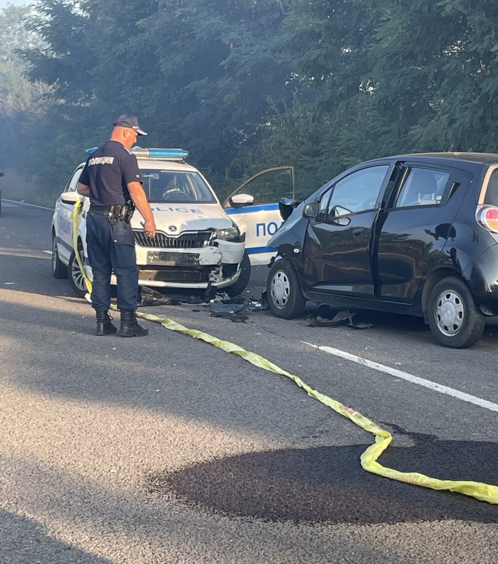 Лек автомобил ,,Шевролет” се натресе в полицейската кола , която отцепва движението на пътя Казанлък – Стара Загора, заради големия пожар. В колата са пътували три жени ,които отивали на работа в Казанлък. Пострадала е шофьорката, а полицаите от патрулката са били извън нея. Нанесени са щети и по двата автомобила.