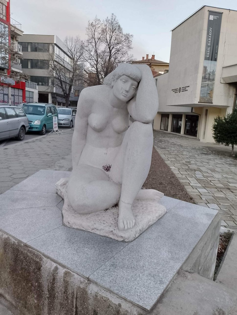 Скулптурата на Христо Песев от Шипка „Голото тяло“, която повече от 4 месеца стои осквернена пред входа на казанлъшката Художествена галерия и Исторически музей, ще бъде почистена. Това обаче няма да стане веднага, а за празниците на Чудомир, най-вероятно.
