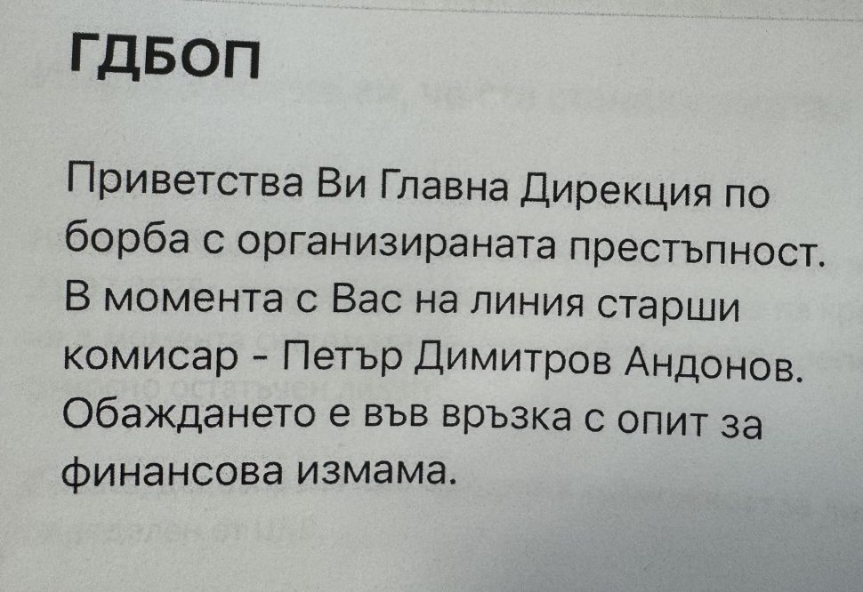 Главна дирекция „Борба с организираната престъпност“ (ГДБОП) алармира за нов вид финансова измама, при която граждани биват въвеждани в заблуждение чрез телефонни обаждания от лица, представящи се за служители на службата. Целта на схемата е незаконно източване на средства чрез принуда за преводи или теглене на кредити в полза на измамниците.